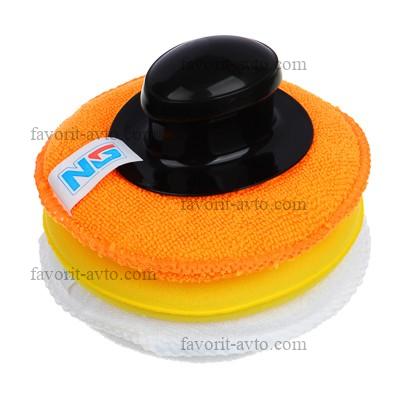 NG Набор аппликаторов 3шт из микрофибры для нанесения составов, с ручкой, 12,5x12,5 см. 1/24 |