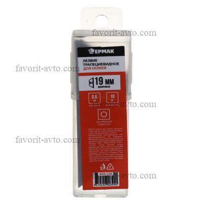 ЕРМАК Лезвие для ножей запасное 19мм трапец. с широким центр.отвер.,сталь, толщина 0,6мм, 10шт/уп |