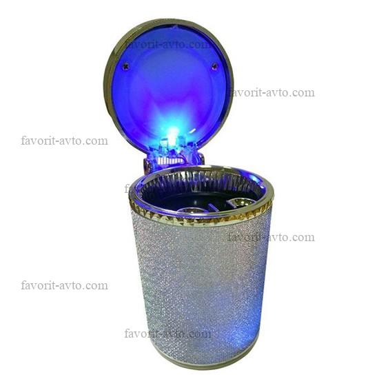 Пепельница автомобильная /СЕРЕБРИСТАЯ/ с подсветкой. 1/100. Арт.: B4126. |