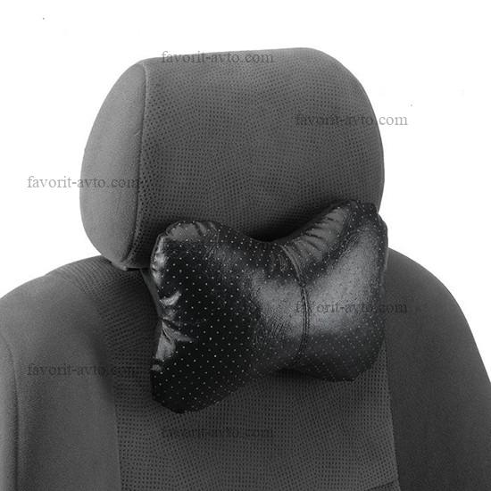 Подушка-косточка под шею , 24*16см., экокожа перфорация, черный. НОВИНКА |