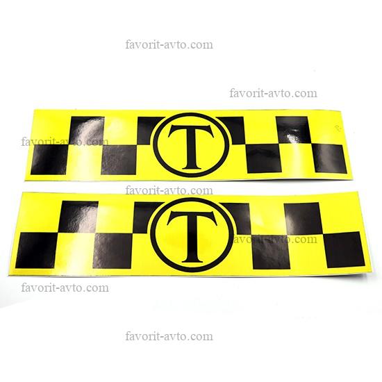 Наклейка Шашки ТАКСИ на бок. /ЖЁЛТЫЙ/ широкая 31см.х8см. 1/25 |