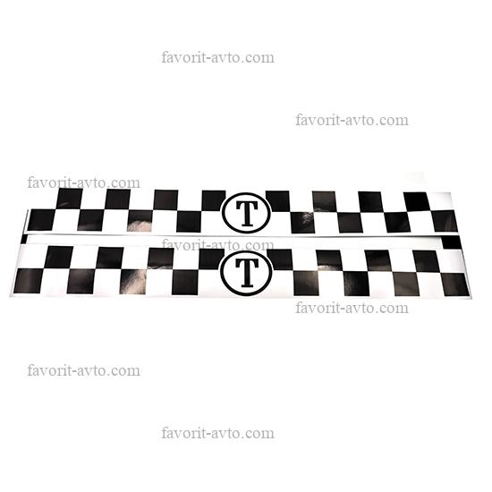 Наклейка Шашки ТАКСИ на бок. /БЕЛЫЙ/ широкая 62см.х8см. 1/25 |