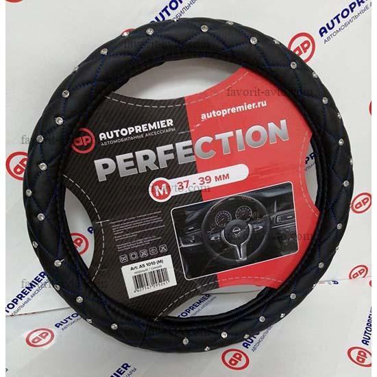 Оплётка руля AUTOPREMIER, эко кожа со стразами, синий/бриллиант, размер (М), 1/15, AS1010M |