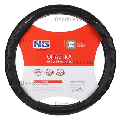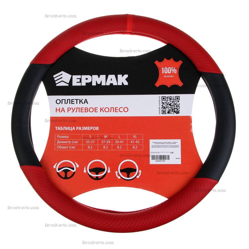 ЕРМАК Оплетка руля, экокожа, Карбон - А, черная с красными вставками, размер М. 1/25 |