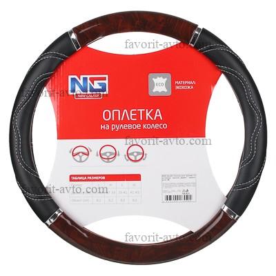 ЕРМАК Оплетка руля, вставка серое дерево, черный (М). 1/25шт |