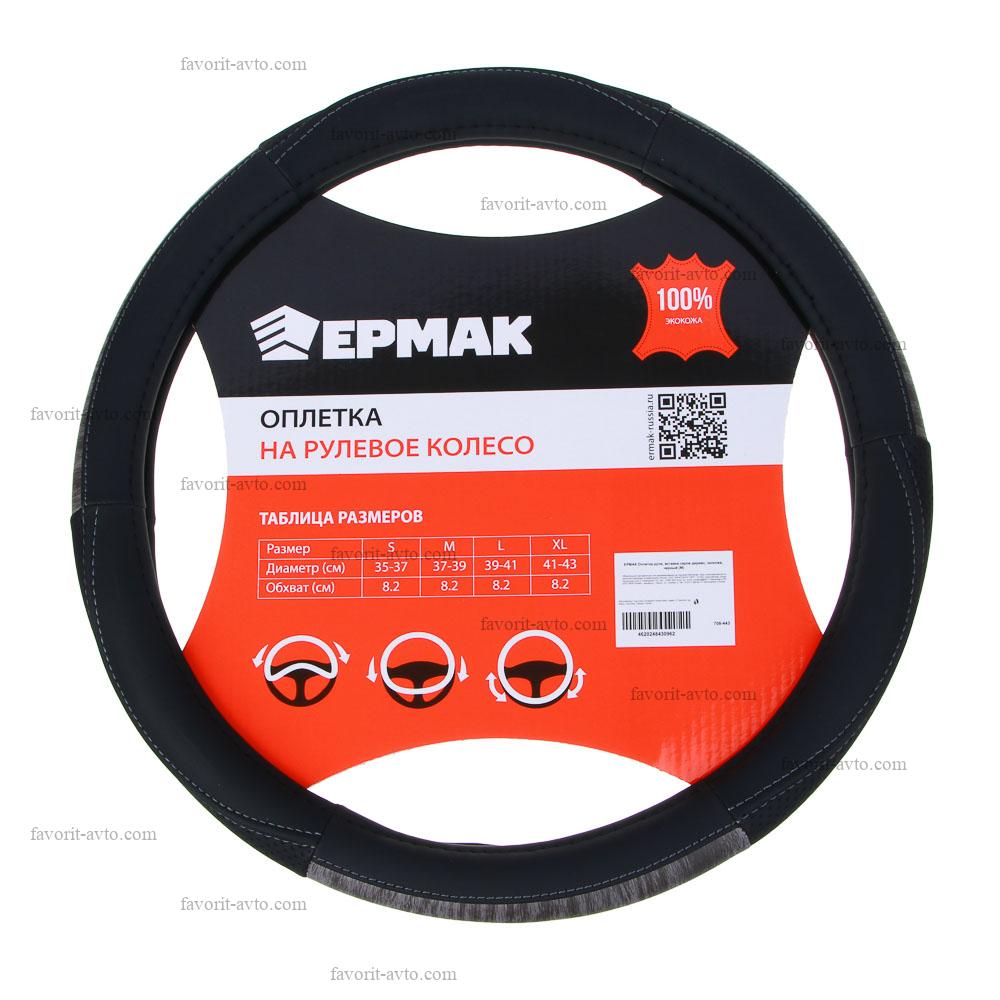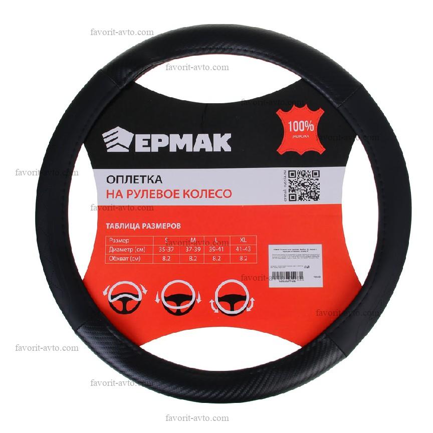 ЕРМАК Оплетка руля, экокожа, Карбон - А, черная с черными вставками, размер М. 1/25 |
