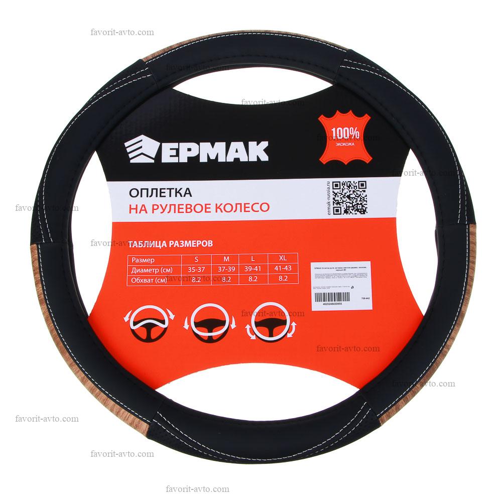 ЕРМАК Оплетка руля, вставка светлое дерево, черный (М). 1/25шт |