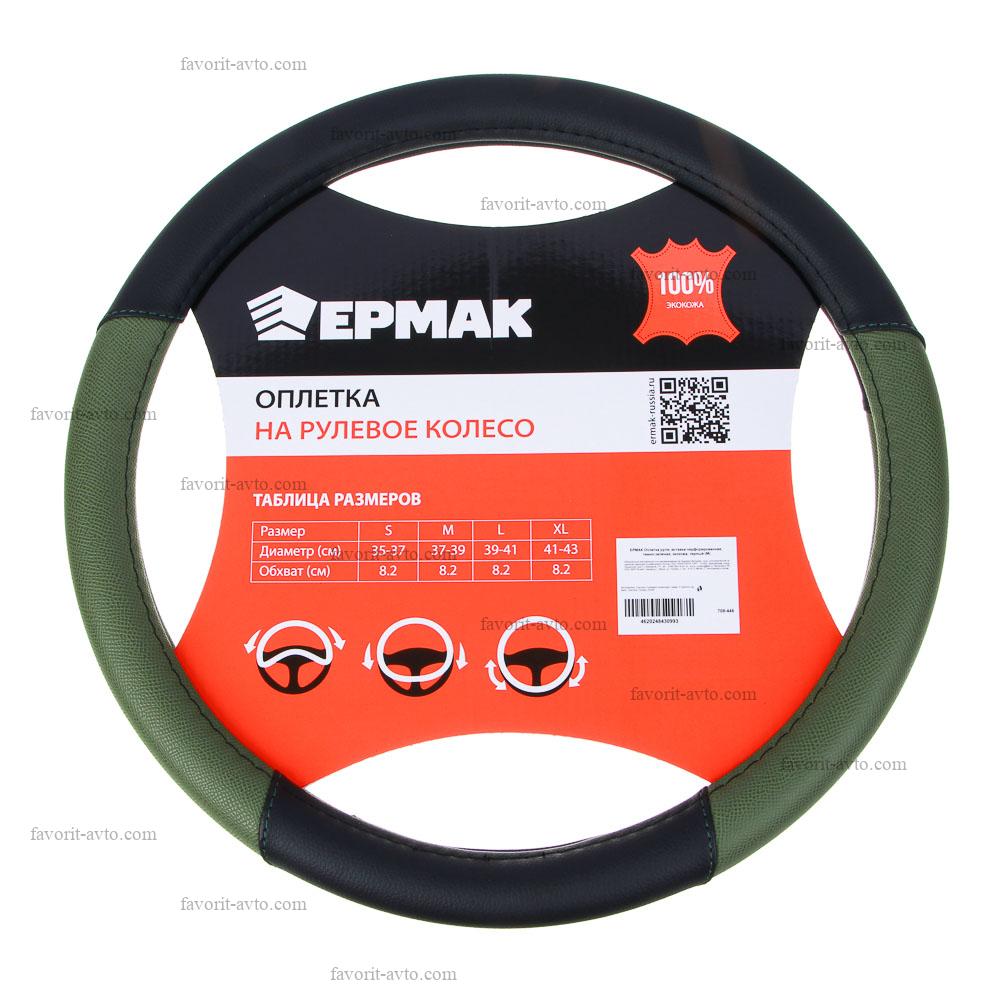 ЕРМАК Оплетка руля, вставка перфорированная, темно-зеленая, экокожа, черный (М) |